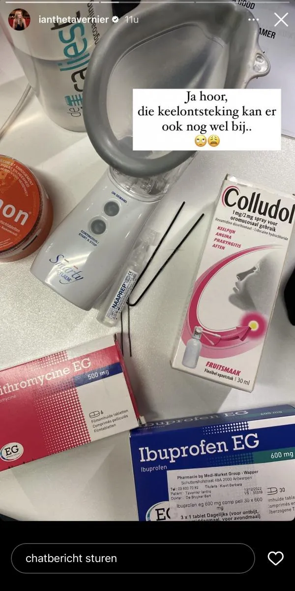 Ianthe heeft namelijk niet zo’n leuke boodschap voor haar volgers op Instagram, want ze laat weten dat het niet zo goed met haar gaat. Ze deelt een foto van verschillende doosjes medicatie en ze legt ook meteen uit wat er aan de hand is. “Ja hoor, die keelontsteking kan er ook nog wel bij”, klinkt het triest.