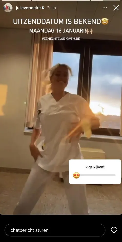 “Vanaf maandag 16 januari zien jullie me op VTM niet in een glamoureuze, shiny floorshow, maar wel op de ziekenhuisvloer”, gaat An verder. “Samen met Sarah Mouhamou, Dominique Persoone en Andy Peelman ging ik voor ‘Een Echte Job’ stage lopen in het OLV-ziekenhuis in Aalst”, vertelt ze.