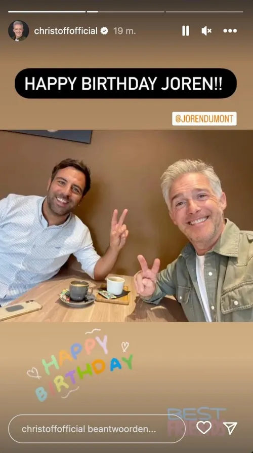 Het is vandaag namelijk Jorens verjaardag. Vandaag kan hij even alles links laten liggen en gewoon genieten van zijn dagje. En daar zal Christoff wel voor zorgen. Op Instagram zet de schlagerzanger Joren stevig in de bloemetjes. Hij deelt een selfie van hun tweetjes en wenst hem een fantastische verjaardag toe.