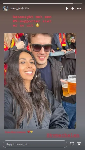 Eerder deze maand raakte bekend dat de vonk tussen Danira en Ward overgeslagen was. Op Instagram deelt de presentatrice voor het eerst een selfie met haar grote liefde. “Datenight met een KV-supporter ziet er zo uit”, schrijft Danira bij de foto op haar verhaal.