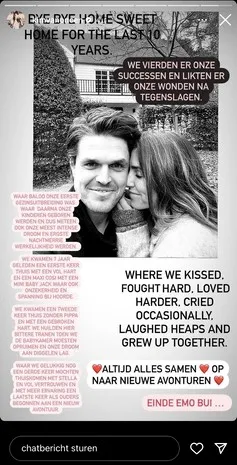 “Einde van mijn emotionele bui”, besluit Kim. Nu kijkt ze vooruit. Binnenkort mag ze met Niels intrekken in hun nieuwe liefdesnest. De verbouwingen zijn volop aan de gang. Sinds enkele dagen is ook de keuken bijna helemaal geïnstalleerd. Bijna instapklaas dus. En Kim is helemaal klaar om er nieuwe prachtige herinneringen te maken met haar gezinnetje. “Altijd alles samen! Op naar nieuwe avonuturen”, klinkt ze hoopvol.