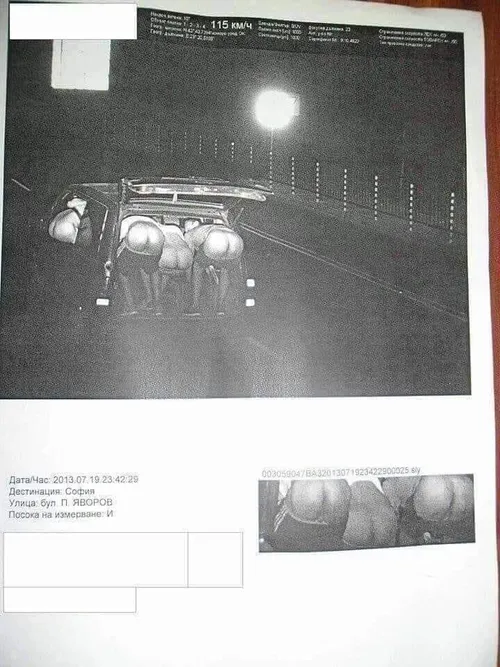 Enkele Bulgaren hebben een boete gekregen omdat ze ergens 115 kilometer per uur reden terwijl ze daar helemaal niet mochten rijden. De manier hoe ze geflitst werden, is wel uniek. Je ziet meerdere vrouwen die hun achterwerk tonen - en jawel - net op dat moment worden ze geflitst.