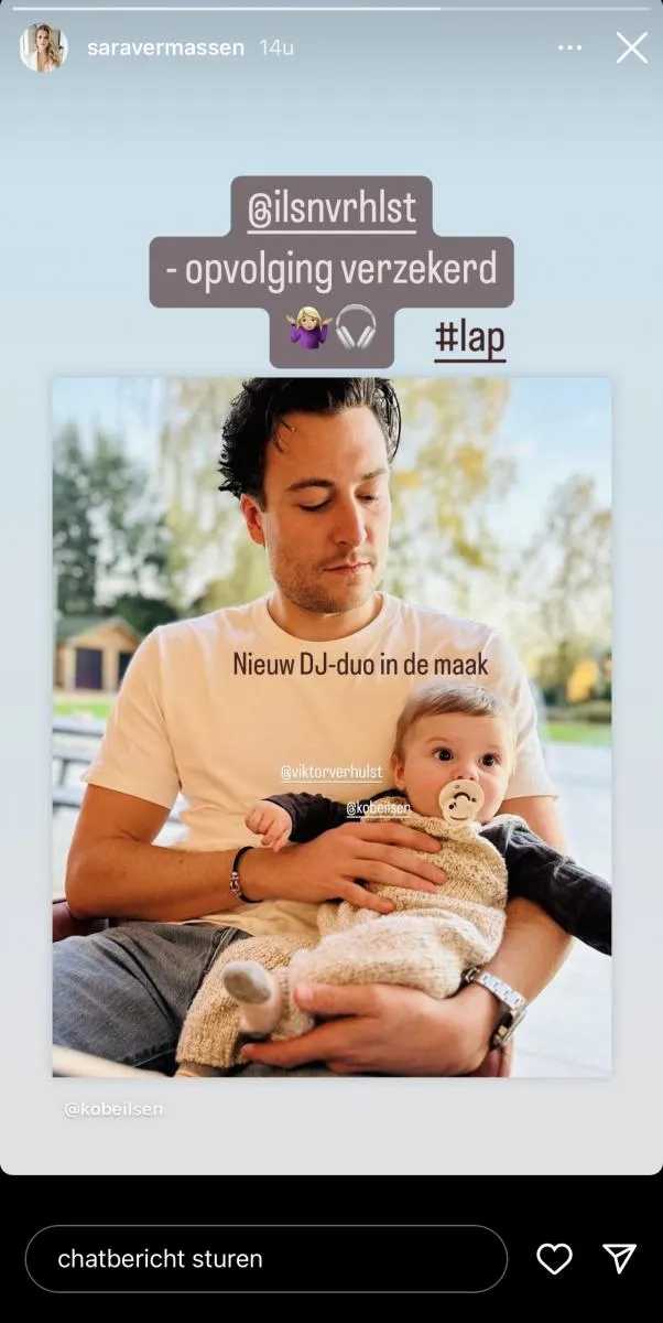 Sara Vermassen, moet meteen wat kwijt over dit kiekje. “Opvolging verzekerd. Nieuw DJ-duo in de maak”, klinkt het op haar Instagramverhaal.