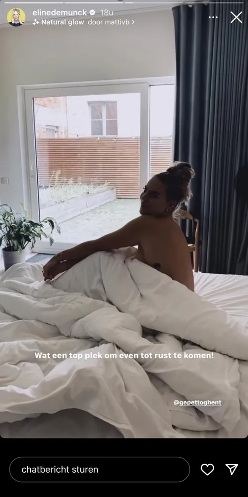 Het is niet de eerste keer dat Eline een foto plaatst waarop ze wat meer van haar lichaam laat zien. Toch deelt ze nu wel iets heel speciaals op haar Instagramverhaal, namelijk een intieme bedfoto.