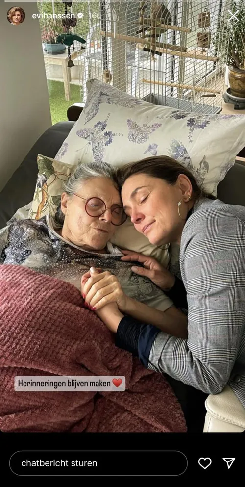 “Sinds maandag is ze in een roes zachtjes naar de hemel aan het gaan”, vertelde Evi toen ook nog. Intussen probeert ze nog dagelijks langs te gaan bij haar moeder. Op haar Instagramverhaal deelt ze nu ook nog een prachtige foto van hun tweetjes waarop ze de hand van haar mama stevig vasthoudt. “Herinneringen blijven maken”, schrijft Evi erbij.