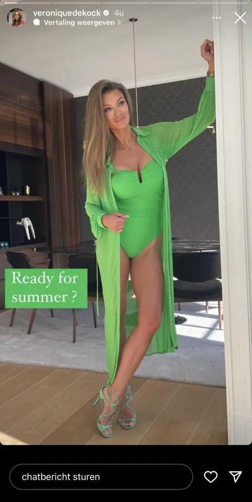 Véronique De Kock is het koude weer kotsbeu en kijkt al uit naar de zomer. Op haar Instagramverhaal deelt ze een pikant plaatje waarop ze poseert in een felgroen badpak.
