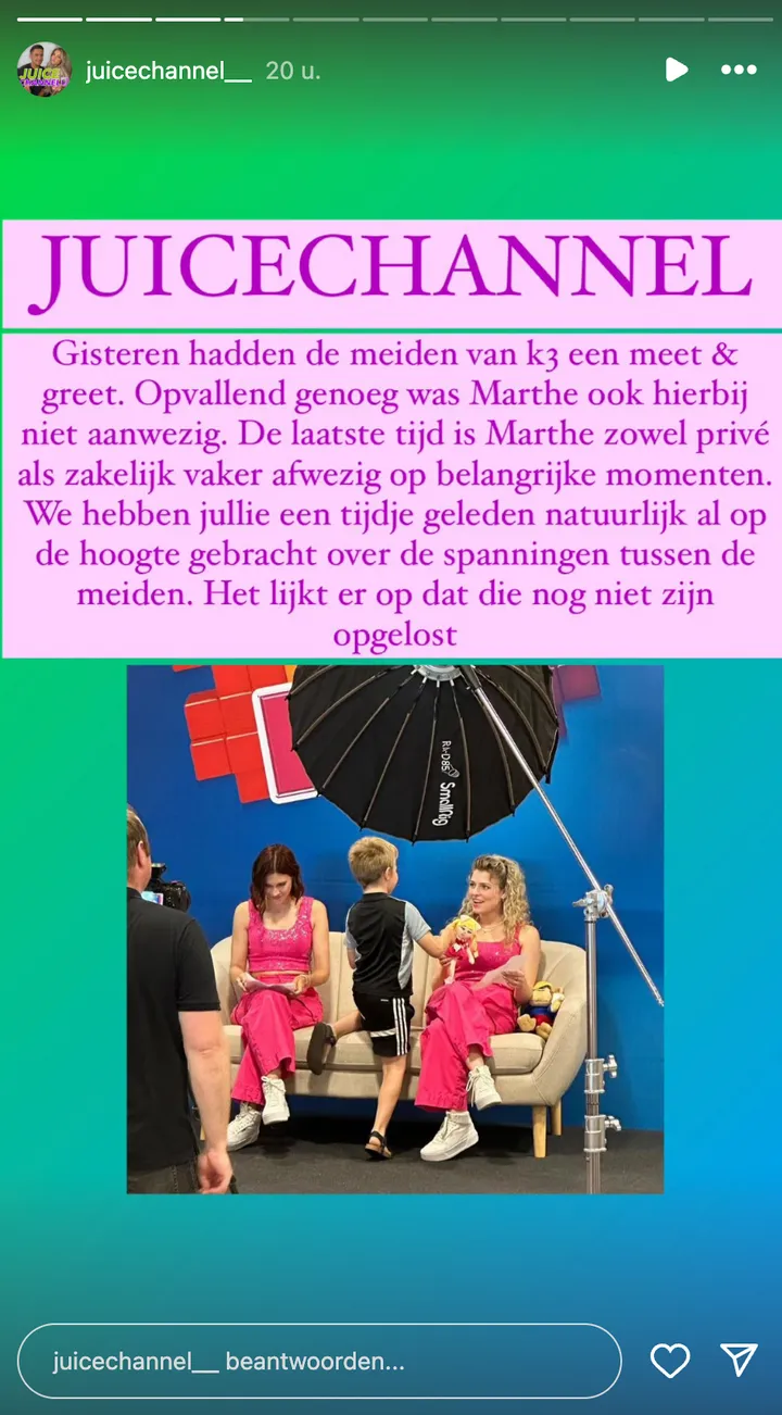 Juice Channel merkt op dat Marthe De Pillecyn van K3 andermaal niet aanwezig was op een meet & greet van K3. Dat is helaas niet de eerste keer dat dit gebeurt.