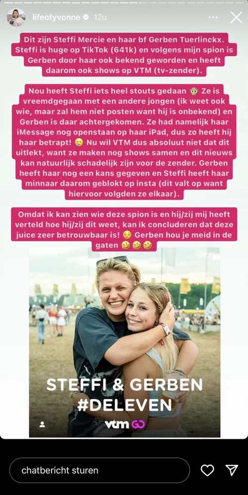 Volgens een spion van Yvonne is Steffi stout geweest. Zo zou ze zijn vreemdgegaan met een andere jongen. “Gerben is daar achtergekomen. Ze had haar iMessage nog openstaan op haar iPad”, klinkt het.