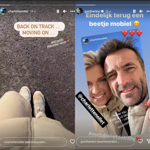 Charlotte is ondertussen opnieuw een pak beter te been. Ze komt weer buiten en gaat elke dag wandelen met haar man. Dat laten ze allebei weten op Instagram. “Eindelijk weer een beetje mobiel”, schrijft Gunther trots. Maar het zou zeker nog zo’n twee maanden duren voor Charlotte weer de oude is. Tot die tijd zal Gunther zijn vrouw in de watten leggen. “Bij mij is ze in goeie handen”, besluit hij.