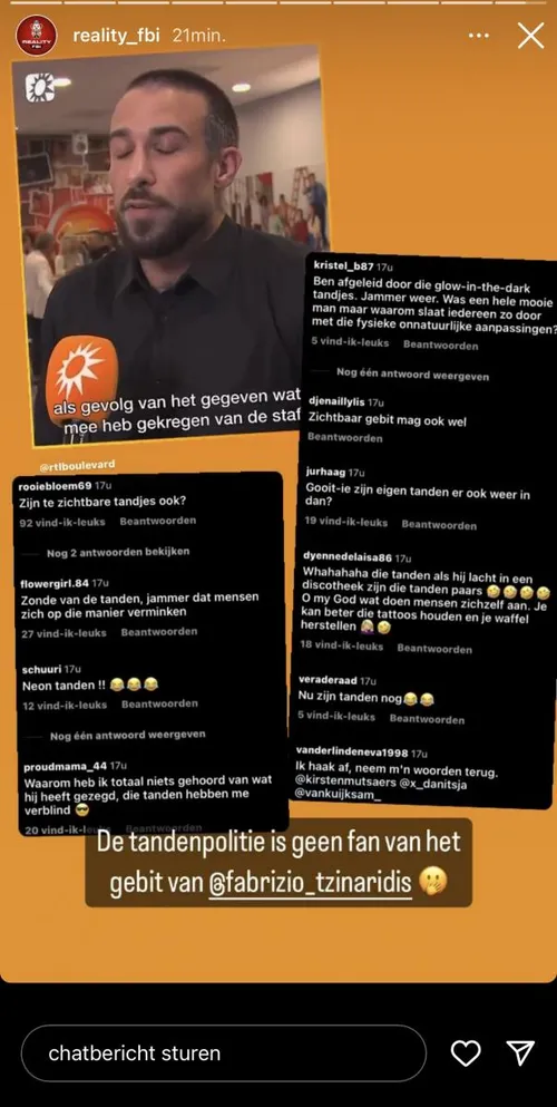 “Zonde van de tanden, jammer dat mensen zich op die manier verminken”, “Ben afgeleid door die glow in the dark tandjes. Jammer weer. Was een hele mooie man, maar waarom slaat iedereen zo door met die fysieke onnatuurlijke aanpassingen?", “Oh my god, wat doen mensen zichzelf aan. Je kan beter die tattoos houden en je waffel herstellen” en “Neontanden”, klinkt het onder meer.
