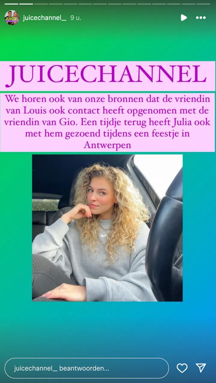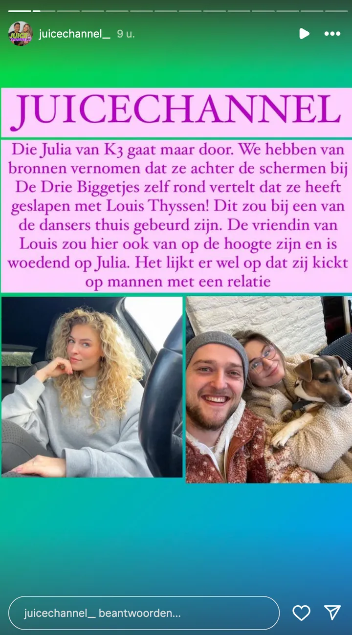 De vriendin van Louis zou hiervan op de hoogte zijn geweest en is nu woedend op Julia. Het is zelfs twijfelachtig of Louis en zijn vriendin nog wel samen zijn. Eerder zou Julia ook al gekust hebben met Gio Kemper, die ook een van de wolven speelde in 'De Drie Biggetjes'.