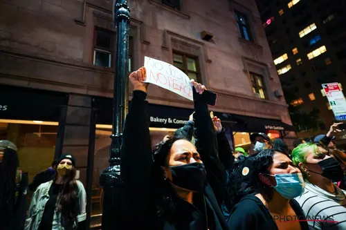Aanhangers die protesteerden tegen de resultaten, sloegen op glazen deuren bij het kantoor van de Maricopa County Elections Department in Phoenix, Arizona. Het stembureau werd naar verluidt gedwongen te sluiten voor het publiek. Joe Biden stond op dat moment 70.000 stemmen voor op Trump.