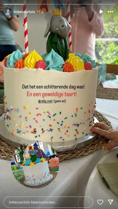 Intussen is de kleine Max al één jaar geworden, wat vliegt de tijd! Dat werd uitgebreid gevierd met een grote taart. Imke maakte er een foto van en dropte die op Instagram Stories.