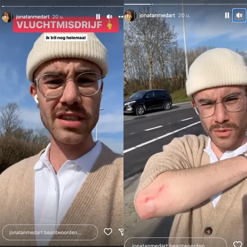 “Een vuile wielrenner heeft mij van de baan geveegd. Hij draaide zich nog om en riep ‘fuck you’ en heeft daarna vluchtmisdrijf gepleegd”, aldus de influencer. “Ik beef er nog van... Vuile rat!” Gelukkig is Jonatan er met enkele schaafwonden van afgekomen. “Maar ik ben hier niet mee gediend. Ik had dood kunnen zijn”, bedenkt hij zich.