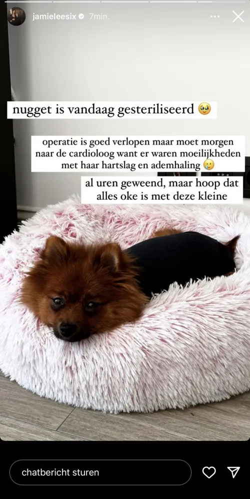 Een pijnlijk verdict dat zeer hard aankomt bij het baasje. Zo laat Jamie-Lee weten dat ze erg aangedaan is. "Al uren geweend", biecht ze op aan al haar volgers. "Maar hoop dat alles oké is met deze kleine”, sluit ze hoopvol af.
