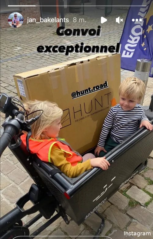 Samen met twee van zijn drie kindjes ging hij donderdag shoppen. Zijn kroost werd samen met een aankoop bij Hunt - een bedrijf dat fietsonderdelen maakt - vervoerd door de ex-renner in een bakfiets: “Convoi exceptionnel!”