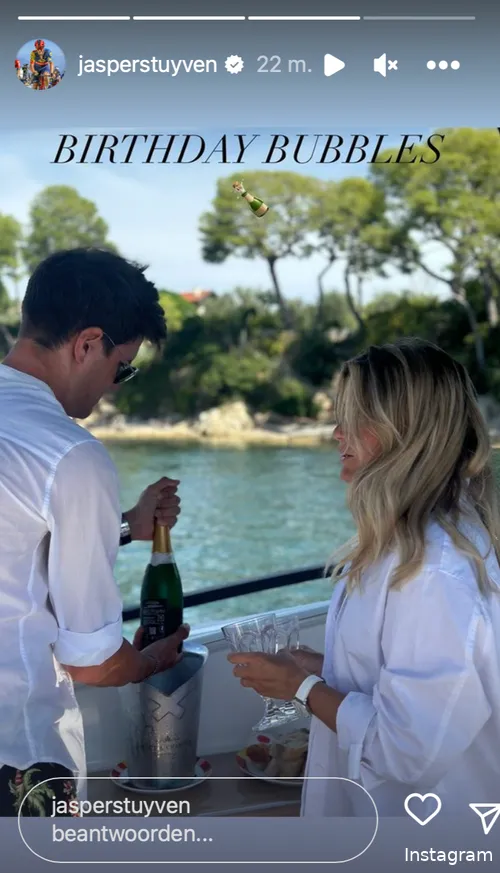 Elke vierde namelijk haar verjaardag. Om haar helemaal in de bloemetjes te zetten deelde Jasper enkele prachtige beelden via Instagram: “Verrassing, gelukkige verjaardag 'wifey'!” en “Verjaardagsbubbels!”