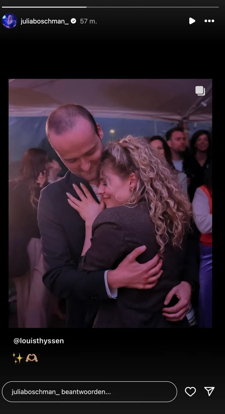 Julia en Louis leerden elkaar heel goed kennen tijdens de musical 'De Drie Biggetjes', waarin ze allebei een hoofdrol hadden. Julia als K3'tje en Louis als wolf. Toen is de vonk overgeslagen.