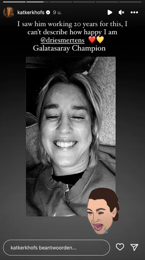 "Ik zag hem hier 20 jaar voor werken. Ik kan niet beschrijven hoe gelukkig ik ben, Dries. Galatasaray kampioen!", schrijft Kat bij een foto op Instagram Stories.