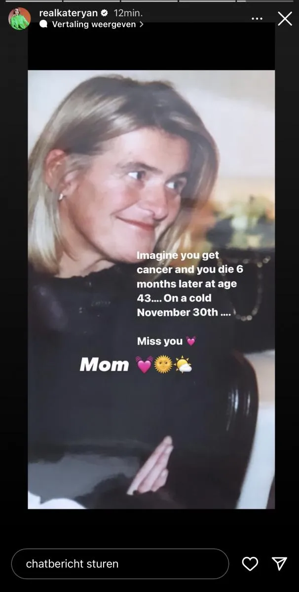 Kate Ryan is zich volop aan het voorbereiden voor een nieuwe tournee. Toch staat de zangeres momenteel even stil bij het overlijden van een dierbare. Vandaag is het namelijk 21 jaar geleden dat ze afscheid moest nemen van haar moeder. Op haar Instagramverhaal plaatst ze nu een emotioneel bericht.