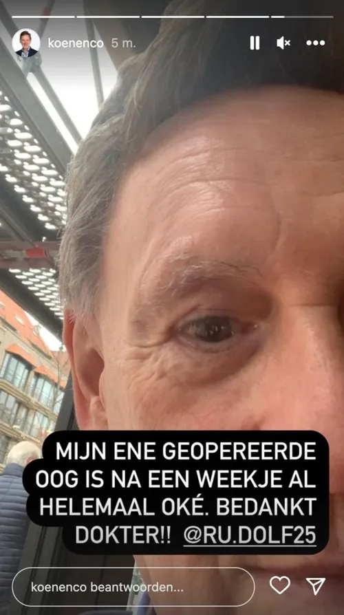 Vorige week moest Koen Crucke dringend geopereerd worden aan zijn oog, anders dreigde hij blind te worden. De dokters waren er gelukkig nog net op tijd bij. Nu laat de zanger en acteur weten hoe het ondertussen met hem gaat.