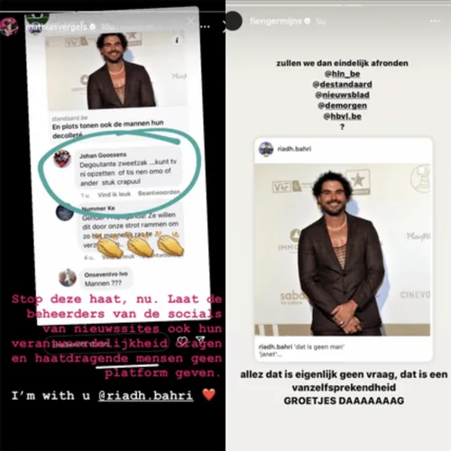 Riadh Bahri werd - samen met enkele andere mannen - serieus door het slijk gehaald op sociale media omwille van zijn outfitkeuze. Steeds meer mannen verschijnen op de rode loper met een diepe decolleté. En dat stuit helaas op bakken kritiek.