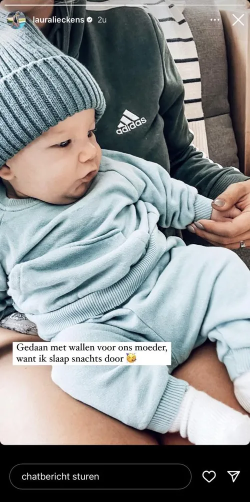 Op haar Instagramverhaal onthult ze dat het steeds beter gaat met Eben en dat heeft ook een invloed op mama Laura. “Gedaan met wallen voor ons moeder, want ik slaap ’s nachts door”, klinkt het. Ze toont ook meteen een schattig kiekje van Eben.