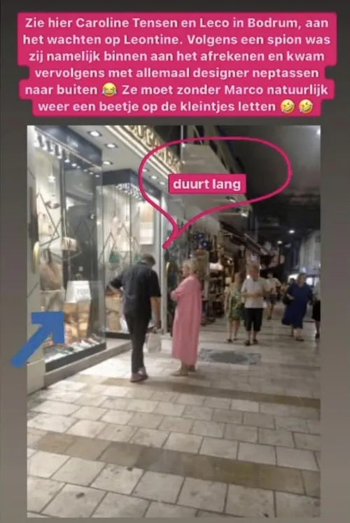 Maar dat is niet alles. Leontine lijkt nu ook financieel aan de grond te zitten. Een spion van Yvonne Coldeweijer heeft Leontine op vakantie namelijk betrapt op het kopen van allerlei namaakspullen van dure merken.