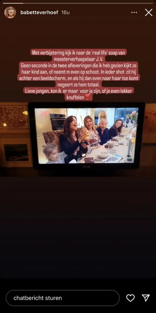 Momenteel is zijn ex-vriendin Jaimie te zien op tv in haar eigen docuserie. De moeder van Lil Kleine heeft naar enkele afleveringen gekeken en moet wat kwijt over haar. “Geen seconde in de twee afleveringen die ik heb gezien kijkt ze haar kind aan, of neemt ze hem even op schoot”, schrijft ze. “Lieve jongen, kon ik er maar voor je zijn, of je even lekker knuffelen”, klinkt het.