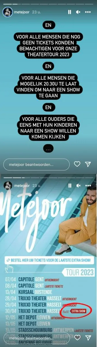 De ticketverkoop van zijn tour ging als een sneltrein. In een mum van tijd wist de zanger enkele zalen uit te verkopen. Maar niet getreurd voor de fans die geen tickets konden bemachtigen. Door het enorme succes kondigt Metejoor een éxtra concert aan in Trixxo Theater in Hasselt op zondag 30 april.
