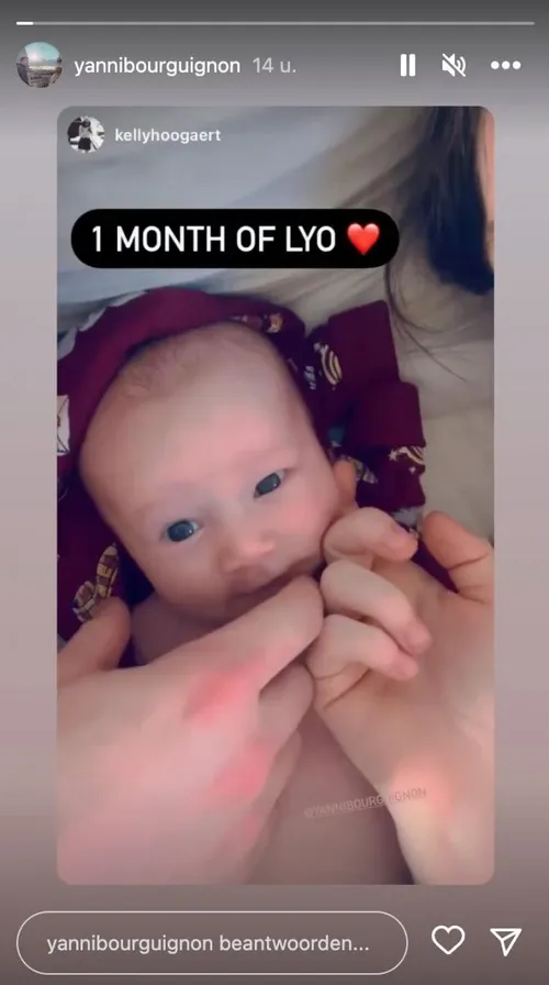 “Eén maandje Lyo”, laten de trotse mama en papa weten op Instagram. De twee pronken met hun kleine wondertje tussen hun tweetjes in. Ze genieten duidelijk van deze kostbare tijd samen.