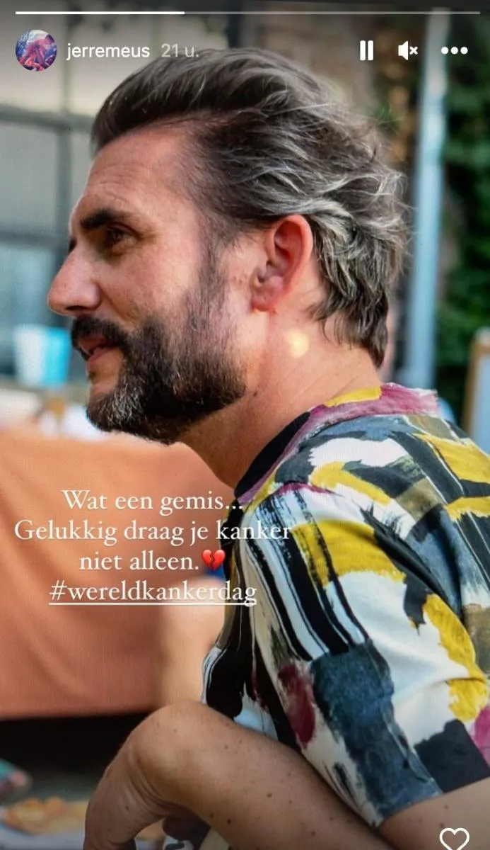 “Wat een gemis”, moet Jeroen van hart op Instagram. “Gelukkig draag je kanker niet alleen”, gaat hij verder. Daarmee citeert hij de slogan van de nieuwe campagne van Kom op tegen Kanker.