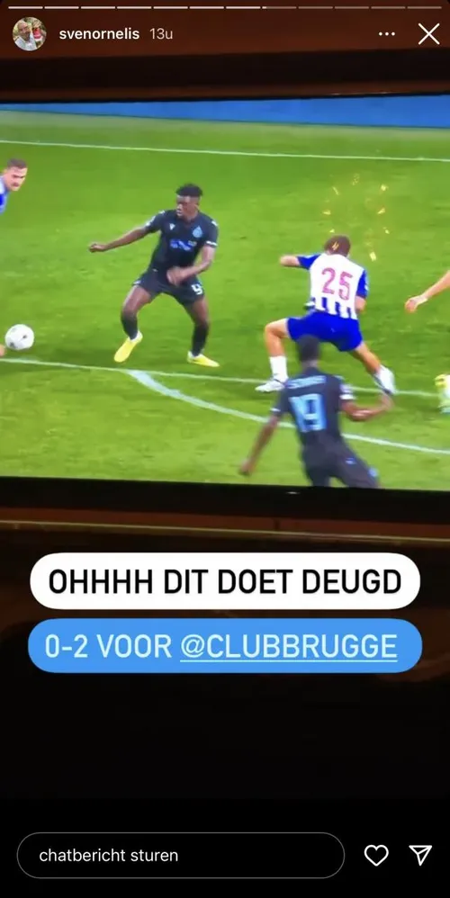 Op zijn Instagramverhaal is te zien hoe hij naar de voetbalmatch van Club Brugge kijkt. In verschillende filmpjes houdt hij zijn volgers op de hoogte over de tussenstand. “Oh my god”, hoor je hem al lachend zeggen terwijl er een nieuw doelpunt valt. “Oh dit doet deugd” en “Zalig”, schrijft hij op de posts. De overwinning van zijn favoriete voetbalclub laat overduidelijk zijn zorgen even verdwijnen.