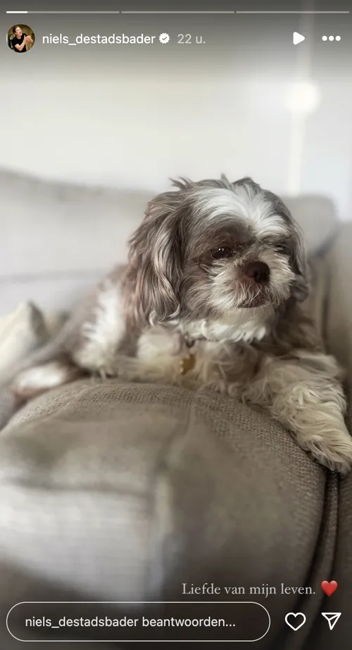 Niels Destadsbader zal geen kans onbenut laten om te benadrukken hoe belangrijk zijn hondje Nona is in zijn leven. Toen zijn loft afbrandde, was het eerste waar hij zo gelukkig om was, het redden van zijn hondje.
