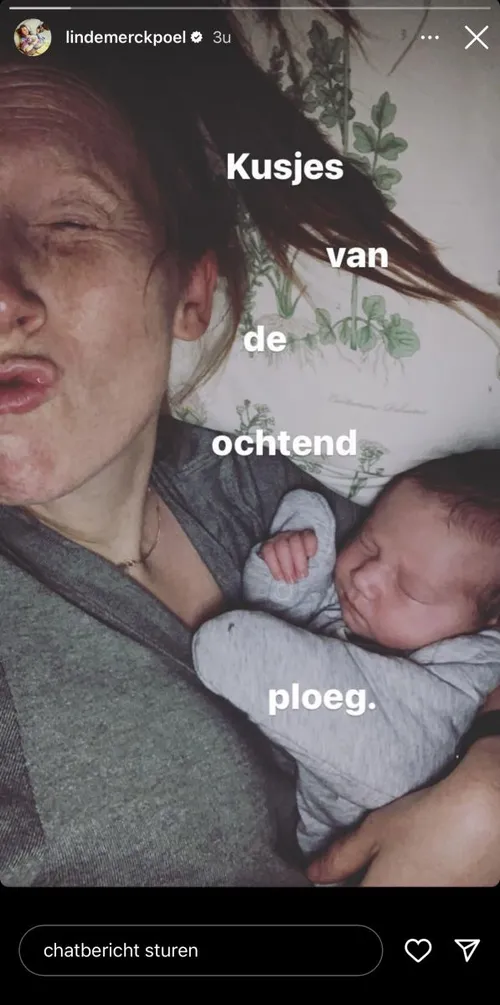 Sinds kort zijn ze dus met z’n vieren ten huize Merckpoel. Drie dagen na de bevalling mochten Linde en Jackie het ziekenhuis verlaten en ze stellen het allebei heel goed. Op haar Instagramverhaal deelt nu een heel schattige selfie van hun tweetjes. Linde moest vroeg uit de veren, maar daar lijkt de kleine Jackie niet zo’n zin in te hebben. “Kusjes van de ochtendploeg”, staat er te lezen op de foto.