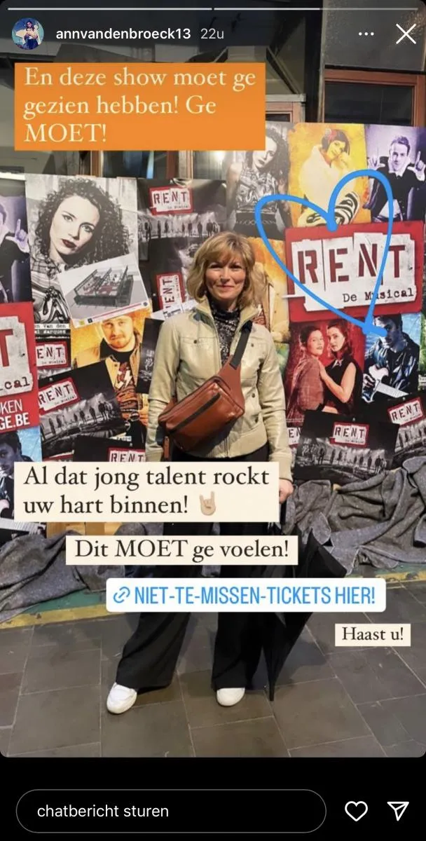 Op haar Instagramverhaal deelt Ann haar enthousiasme. “Al dat jong talent rockt uw hart binnen! Deze show moet je gezien hebben”, schrijft ze. “Haast u”, voegt ze nog toe.