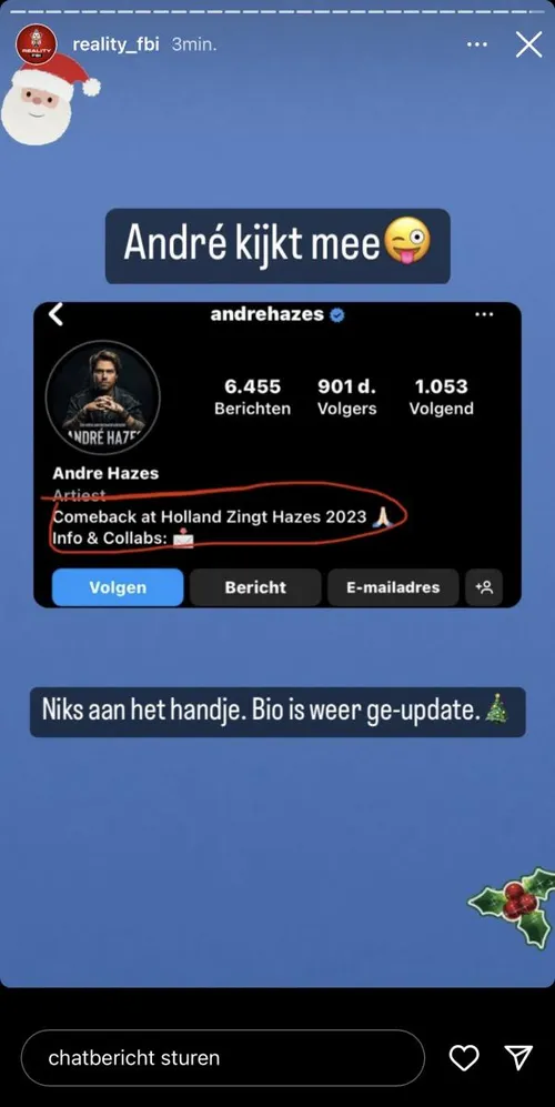 André lijkt de bezorgdheid van zijn fans te hebben opgemerkt. "André kijkt mee", zegt 'reality_fbi' al lachend. Niet veel later heeft de zanger zijn bio namelijk opnieuw bijgewerkt. "Comeback at 'Holland zingt Hazes 2023'", staat er nu te lezen. "Niks aan het handje", aldus het juicekanaal.