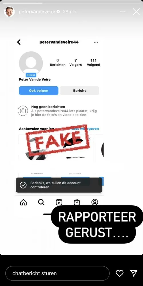 Daarnaast doet Peter ook meteen een oproep aan zijn volgers. “Rapporteer gerust”, zegt hij. Zo zou het profiel mogelijk verwijderd kunnen worden.