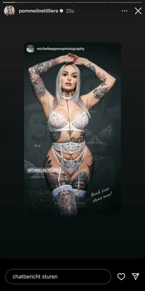 Op haar Instagramverhaal trakteert ze nu al haar fans opnieuw op een opvallend plaatje. Voor een nieuwe fotoshoot ging ze namelijk uit de kleren en ze showt wel erg veel bloot. Pommeline heeft alleen maar een pikant lingeriesetje aan en zo laat ze vol in haar boezem kijken.