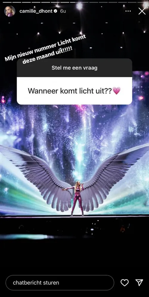 Ondanks dat haar tweede album nog maar in augustus uit is gekomen, heeft Camille alweer nieuw materiaal klaarstaan. Dat bekent ze zelf op haar Instagramverhaal tijdens een vragenrondje. “Wanneer komt ‘Licht’ uit?”, vroeg een nieuwsgierige fan aan haar. Camille geeft daar nu een duidelijk antwoord op.