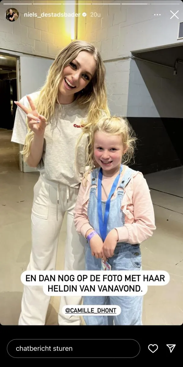 Op zijn Instagrampagina deelt hij enkele hartverwarmende beelden van de twee die luidkeels meezingen met de hits van Camille. Vervolgens had Niels nog een verrassing in petto voor haar, want ze mocht nog naar de backstage om haar idool te ontmoeten. “En dan nog op de foto met haar heldin van vanavond”, klinkt het.
