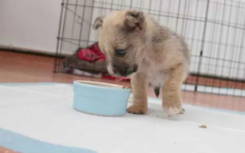 Het dier werd overgebracht naar Dogs Trust, een dierenorganisatie in Leeds. De puppy was op het moment dat hij gevonden werd, wel al erg verzwakt. Hij had een worminfectie en schurft. Bovendien woog het diertje minder dan een kilogram.