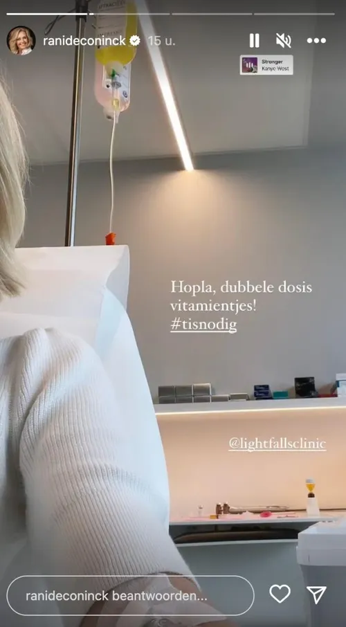 Normaal kan je haar elke dag tussen 16u en 18u aan het werk horen op Joe, maar nu staat Raf Van Brussel er dus alleen voor. Op haar verhaal zien we Rani aan een baxter hangen. De presentatrice laat weten dat ze “de snelste weg naar volledig herstel” probeert om haar radiomaatje weer bij te staan. Haar dubbele dosis vitamines heeft ze alvast binnen.