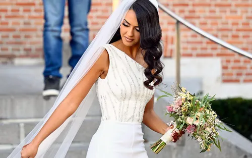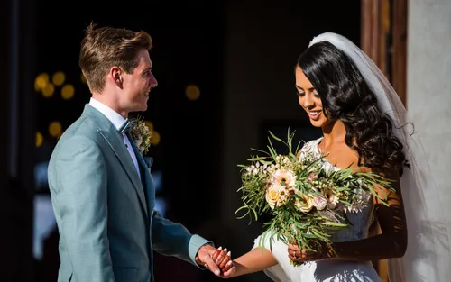 Het koppel kwam op hun grote dag in stijl aan in een mooie oldtimer. Remco ruilde zijn regenboogtrui voor de gelegenheid gelukkig in voor een lichtgroen kostuum. Maar het was vooral Oumi die met alle aandacht ging lopen. Wel in traditioneel wit, maar geen bruidsjurk. Zij koos liever voor een prachtige jumpsuit met ellenlange sluier.