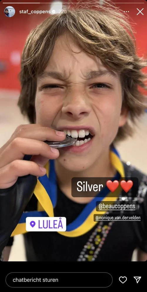 Daarnaast heeft Staf nog goed nieuws te melden. Op zijn Instagramverhaal vertelt hij dat zijn zoon Beau een zilveren medaille heeft veroverd. Beau doet aan kunstschaatsen, net zoals zijn zus en mama.