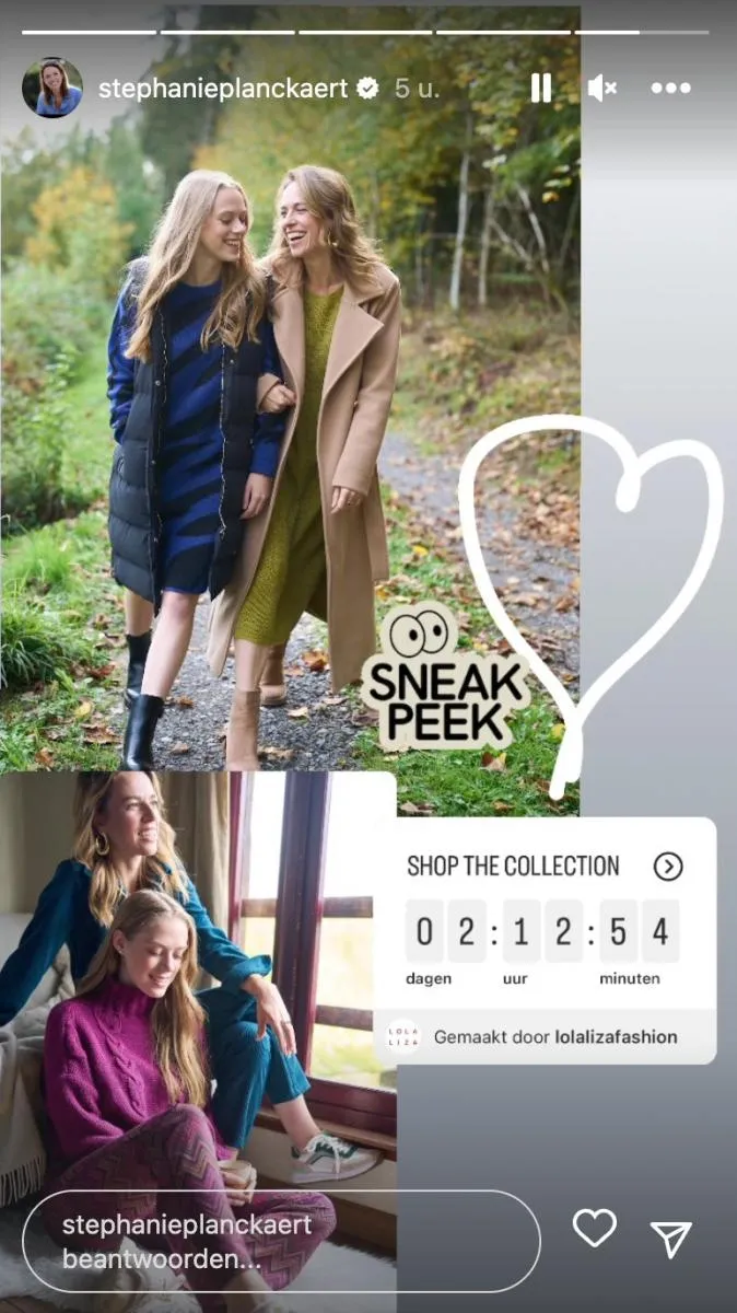 “Ik kan niet wachten om dit met jullie te delen”, besluit Stephanie. Daarom laat ze op Instagram al een glimp van hun collectie zien. Samen met haar dochter houdt ze een heuse fotoshoot om hun LolaLiza-kledij voor te stellen. Donderdag 17 november komt de collectie officieel uit en hangen hun ontwerpen overal in de etalage.