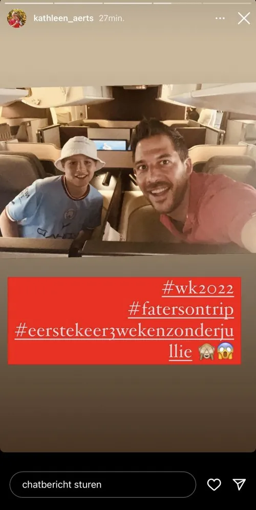Op Instagram deelt het gezinnetje nu bijzonder nieuws. “WK voetbal 2022, we komen eraan”, plaatst de oudste zoon van Kathleen. Hij is samen met zijn papa naar Qatar vertrokken voor het WK voetbal, maar dat vindt mama Kathleen toch net iets minder leuk. “Eerste keer drie weken zonder jullie”, reageert ze.