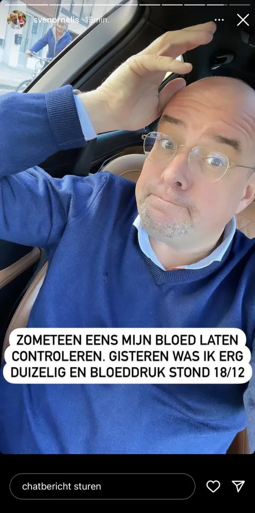 “Gisteren was ik erg duizelig en bloeddruk stond 18/12”, deelt Sven. Een verontrustende vaststelling en daarom onderneemt Sven snel actie. “Zometeen eens mijn bloed laten controleren.”