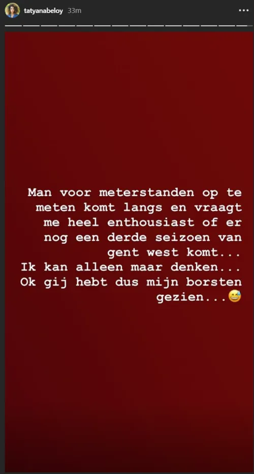 Op zich geen abnormale vraag. Alleen kon Beloy maar één ding denken. “Ok, gij hebt dus mijn borsten gezien”, zo schrijft ze op Instagram.