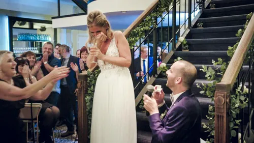 Blind Getrouwd aan een primeur toe: een huwelijksaanzoek mét verlovingsring. De sportieve key accountmanager Tim gaat na hun huwelijk op zijn knie voor zijn kersverse echtgenote Elke, die niet weet wat haar overkomt en op slag ontroerd is.